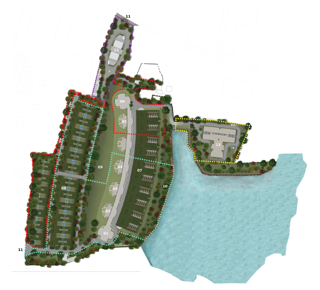 The project sits at the edge of a small lake and includes our signature earth-sheltered homes with four bedrooms, our popular C20 layout, our unique lake-facing L30 three-bedroom apartments, and our special L45 four-bedroom apartments that step back from the lake with open-to-sky gardens.